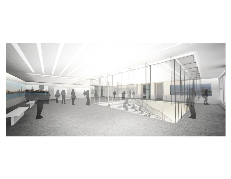 Three glass boxes animate the new BSA in this proposal. They organize the spaces around them and generate a multiplicity of activities inside. Housing the main public programs of the BSA, these boxes adjust in shape and size in order to meet a wide range of activities and enhance the BSA’s public engagement. These elements are adjusted in order for the same space to house a variety of programs such as exhibitions, receptions, meetings, and lectures. When the grand stair is open, it serves as a large welcoming entrance to the exhibition space upstairs. It also serves as lecture space with the retractable partitions along the facade controlling the degree of visibility to the street, and as an extension of the exhibition space on the upper level. When the grand stair is retracted, the cleared area serves as lobby, exhibition or reception space. These two glass boxes are placed in the staff zone of the BSA. One of them consists of three rooms with partitions between them to accommodate a variety of sizes of group sizes and activities. The two rooms are surrounded by curtains that can be adjusted to control light and visibility. They are also surrounded by closets for storage of furniture and equipment to facilitate quick changes in use. The staff spaces are distributed between the outer perimeter of the building and the conference boxes. They can be laid out in a free open space manner or they can be sequestered with high partitions for privacy. A double-height volume at the entrance of the BSA is visible to visitors from the street. This box changes with the changes in public activities. It consists of : A multi-door glass façade to the street - a main stair - retractable grand stair (bleachers) - foldable panels - operable glass enclosure.