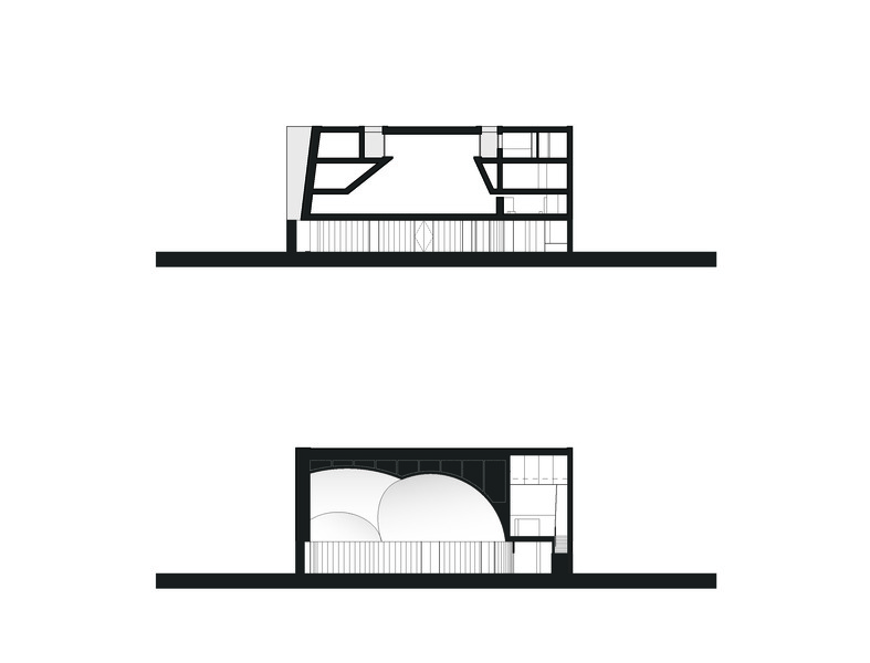 The ablution courts sit below the cuts that define the two minarets, allowing light to wash down into these areas. The L-shaped courtyard includes all the necessary functions of storage for shoes and coats, reference area, and reception area. A curvilinear wooden wall is the threshold between this courtyard and the main prayer hall. The prayer hall is a stark space with a sculptural vaulted roof that orients towards the qiblah and faces a double mihrab in the Qatari tradition. T
