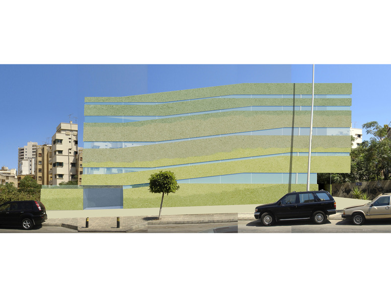 This project is one of twelve libraries planned by Assabil, a Lebanese NGO founded in 1997 to establish and support public libraries in Lebanon, for construction in the downtown Beirut area. The goal of these libraries, as stipulated by Assabil, is to make information and imagination available to everyone in order to help transform Lebanon into a solid and legitimate democracy after years of turmoil. The site is located in the Caracas residential neighborhood of Ras Beirut, in close proximity to many large universities, the seaside corniche, and the popular Hamra Street. While these attractions are still of major importance to the area and to the city as a whole, the neighborhood is in need of a spark plug to revive the tip of the city and generate excitement and pride from residents who have been worn out by the civil war and continuing violence in the area. The project goes beyond the typical use of a library, combining the traditional reading and computer rooms with a roof garden, children’s area, auditorium, and outdoor terrace into a downward sloping design. Due to the site’s constraints, it is difficult to have two means of egress and handicap access. As such, an ADA ramp doubles as the stacks, turning this circulation necessity into a unifying element among the library’s different functions and into its expressive exterior profile. Given the tight budget, the building will be built out of poured in place, pigmented concrete, with different color pigments used to emphasize its sloping profile and achieve a mural-like character on the exterior of the building. The library is lit naturally with a skylight that covers over the atrium space in the stacks introducing indirect light into the reading rooms and other floors. This creates an ambient lighting condition that is more desirable for a library. Individual windows are placed in the reading rooms and stack areas where necessary in order to provide focused light for specific space.