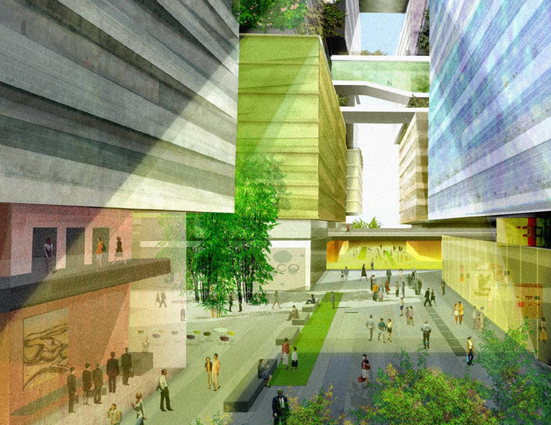 The charge is to provide a model for a mixed-use development organized in clusters that would accommodate ten to fifteen thousand people during the day and that would allow many of the businesses to have autonomous presence within this collective and stimulating environment.